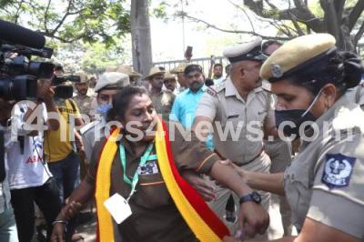 Event Description : Members of Adarsha Auto and Taxi Drivers Union detained by police during their protest against white board bike and taxi at Bengaluru City Railway Station, in Bengaluru on Monday 20th March 2023