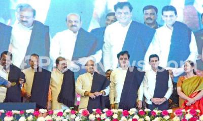 Photo Caption : Chief minister Basavaraj Bommaiah with Ministers Narayan Gowda, Prabhu Chavan, Ashwath Narayan and Shivajinagar MLA Rizwan Arshad and others during the distribution of cheques to students under Vidhya Nidhi scheme after post matric, in Bengaluru on Thursday 23rd March 2023