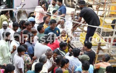 Event Description : Residents of Puttenahalli rush to take hen (Chicken) which were distributed by BJP party workers as Part of Hosa Todaku Festival celebrated during Ugadi, in Bengaluru on Thursday 23rd March 2023