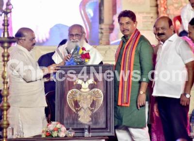 Photo Caption : Rajyasabha Member and Screenwriter V Vijayendra Prasad being felicitated by Chief Minister of Karnataka Basavaraj Bommai during the inauguration of 14th edition of Bengaluru International Film Festival (BIFFEs), at Vidhana Soudha, in Bengaluru on Thursday 23rd March 2023