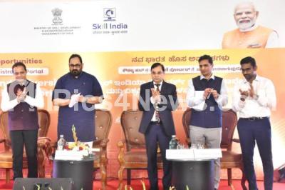Rajeev Chandrasekhar, Minister of State, Electronics and Information Technology, Skill Development and Entrepreneurship with Dr. S. Selvakumar, I.A.S. Principal Secretary, Skill Development, Entrepreneurship and Livelihood Department, Jayakara SM, Vice Chancellor of Bangalore University and others during launch of Skill Hub Registration Portal, in Bengaluru on Friday 24th March 2023