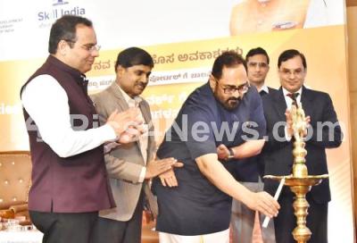 Photo Caption : Rajeev Chandrasekhar, Minister of State, Electronics and Information Technology, Skill Development and Entrepreneurship with Dr. S. Selvakumar, I.A.S. Principal Secretary, Skill Development, Entrepreneurship and Livelihood Department, Jayakara SM, Vice Chancellor of Bangalore University and others during launch of Skill Hub Registration Portal, in Bengaluru on Friday 24th March 2023