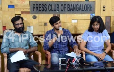 Photo Caption : Lekha with Syed Junaid, Kishan and other members of All India Students Association (AISA) addressing a press conference on the Karnataka Governments unconstitutional decision to scrap reservation for Muslim OBCs at Bengaluru Press Club, in Bengaluru on Saturday 1st April 2023