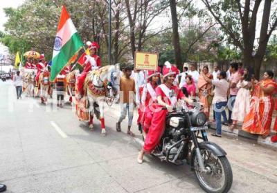 Photo Caption : Members of the Jain community take part in a procession to celebrate “Mahavir Jayanti” at Freedom Park, in Bengaluru on Tuesday 4th April 2023