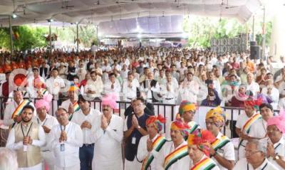 Photo Caption : Jain community people during "Mahavir Jayanti" celebrations at Freedom Park, in Bengaluru on Tuesday 4th April 2023