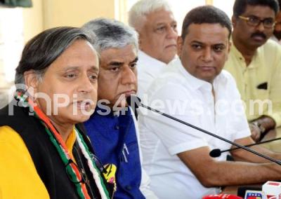 MP Shashi Tharoor addressing a press conference at KPCC office, in Bengaluru on Sunday 9th April 2023