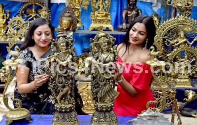 Photo Caption : Actresses and Models Yashaa and Preethu Pooja inaugurated the Indian Artisans Bazaar at Chitrakala Parishat, in Bengaluru on Friday 14th April 2023