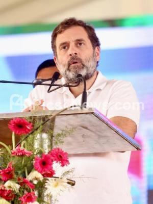 Photo Caption : Congress leader Rahul Gandhi addressing during Congress Jai Bharath convention, in Kolar on Sunday 16th April 2023