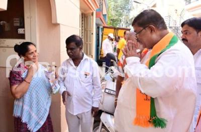 Photo Caption : BJP Mahalakshmi Layout Candidate Gopalaiah campaigning at Mahalakshmi layout for the Karnataka Assembly Election, in Bengaluru on Wednesday 19th April 2023