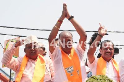 BJP Hebbal Assembly constituency candidate Katta Jagadish files his nomination for the Assembly elections, in Bengaluru on Thursday 20th April 2023