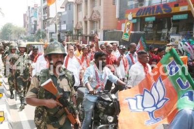 Photo Caption : BJP Hebbal Assembly constituency candidate Katta Jagadish files his nomination for the Assembly elections, in Bengaluru on Thursday 20th April 2023