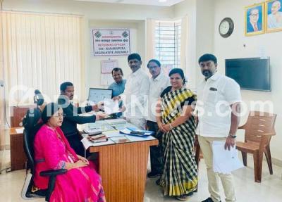 Photo Caption : Congress Kanakapura Assembly constituency candidate DK Suresh (Congress MP and KPCC President DK Shivakumar brother) submitting his nomination papers to for the Assembly election, in Kanakapura on Thursday 20th April 2023