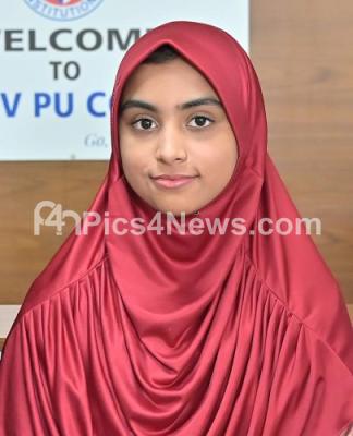 Photo Caption : 2nd PU topper in Arts division Tabassum Sheik of NMKRV college student, 2nd PU results announced today, in Bengaluru on Friday 21st April 2023