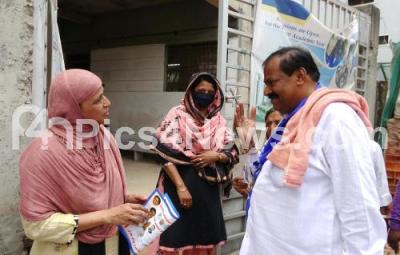 Photo Caption : BSP Pulakeshinagar Candidate R Akhanda Srinivas Murthy campaigning for the Assembly Elections, in Bengaluru on Friday 28th April 2023