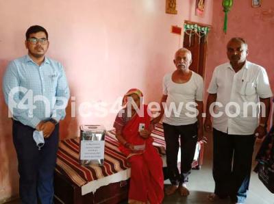 Photo Caption : An elder lady cast her vote from her home, a new system launched by Election Commission for above 80 years and Specially abled people, in Belagavi on Saturday 29th April 2023