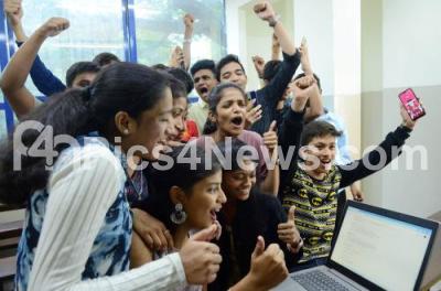 Photo Caption : Students check results of SSLC at Indian institute of specialised education, SSLC results were announced today statewide, in Bengaluru on Monday 8th May 2023