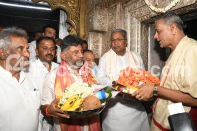 Karnataka Congress Leaders Visit Chamundeshwari Temple before Election Day