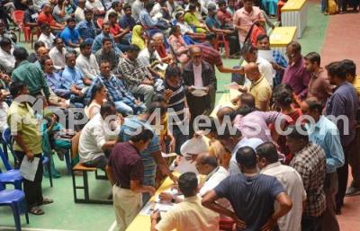 Photo Caption : On election duty polling officials check Electronic Voting Machine (EVM) before taking to the designated polling booths, on the eve of assembly elections, in Bengaluru on Tuesday 9th May 2023