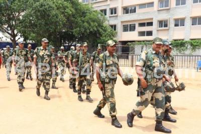 Photo Caption : Tight security during counting of Karnataka Assembly Election, in Bengaluru on Saturday 13th May 2023