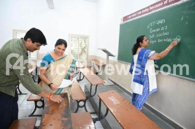 Photo Caption : College teachers and staff preparations ahead of CET Exams at Sheshadri college, in Bengaluru on Friday 19th May 2023