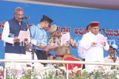Photo Caption : Karnataka Governor Thaawar Chand Gehlot administered the oath to Cabinet Minister KJ George during oath-taking ceremony of Karnataka chief Minister and Deputy Chief Minister at Sree Kanteerava Stadium, in Bengaluru on Saturday 20th May 2023