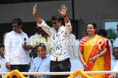 Photo Caption : Actors Kamal Hasan, Duniya Vijaya and Umashree seen during oath-taking ceremony of Karnataka chief Minister and Deputy Chief Minister at Sree Kanteerava Stadium, in Bengaluru on Saturday 20th May 2023