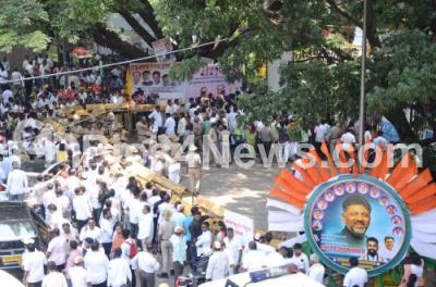 Photo Caption : Police personnel controlling the crowd during oath-taking ceremony of Karnataka chief Minister and Deputy Chief Minister at Sree Kanteerava Stadium, in Bengaluru on Saturday 20th May 2023