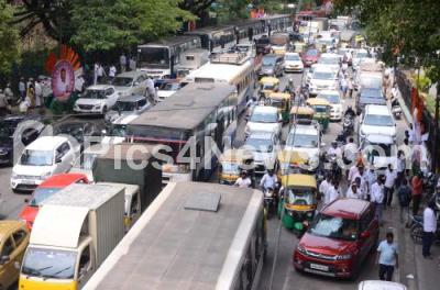Photo Caption : Traffic Jam during oath-taking ceremony of Karnataka chief Minister and Deputy Chief Minister at Sree Kanteerava Stadium, in Bengaluru on Saturday 20th May 2023