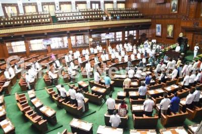 Photo Caption : Chief Minister Siddaramaiah, DCM DK Shivakumar, Ministers and MLAs seen during Assembly Session at Vidhana Soudha, in Bengaluru on Monday 22nd May 2023