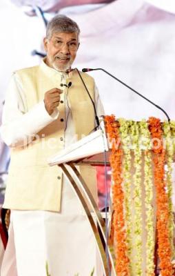 Photo Caption : Nobel Laureate and Activist Kailash Satyarthi addressing during a Dr. MS Ramaiah Memorial Lecture 2023 program, in Bengaluru on Monday 5th June 2023