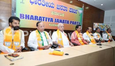 BJP Karnataka incharge Arun Singh, Former CMs BS Yediyurappa, Basavaraj Bommai, DV Sadananda Gowda, BJP State President Nalin Kumar Kateel during the BJP MLAs meeting at Party office , in Bengaluru on Thursday 8th June 2023
