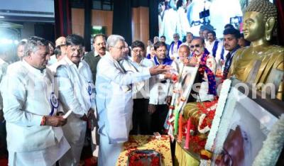 Chief Minister Siddaramaiah with Ministers KH Muniyappa, HC Mahadevappa, S Mariswamy, President, Spoortidhama and others during the “Janamana Namana Bhima Sankalpa” conference at Town Hall, in Bengaluru on Friday 9th June 2023