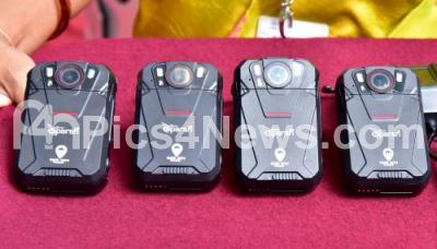 Photo Caption : Bengaluru Police body cameras being displayed during Home Minister Dr. G Parameshwara to visits Police Commissioner office, in Bengaluru on Friday 16th June 2023