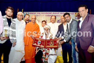Photo Caption : Minister Dinesh Gundu Rao being felicitated by Sri Nirmalananda Swamiji of Adichnunchangiri Mutt at a program organised by Karnataka Ayurvedic Medical College at Gandhi Bhavan, in Bengaluru on Saturday 17th June 2023