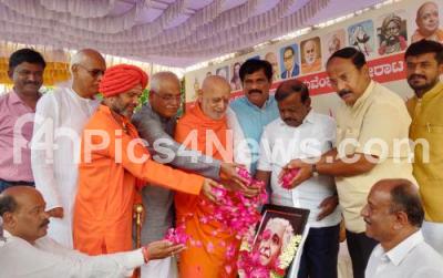 Photo Caption : Sri Chandrashekar Swamiji with Siddarama Chaitanya Swamiji, Justice V Gopal Gowda, Rajya Sabha Member CH Hanumantaiah and others during the inauguration of “Pragna Day” organised by Kuvempu Horata Samiti Karnataka at Freedom Park, in Bengaluru on Sunday 18th June 2023