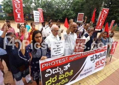 Photo Caption : Members of SUCI Protest against the State Government for electricity tariff hike at Freedom Park, in Bengaluru on Wednesday 21st June 2023