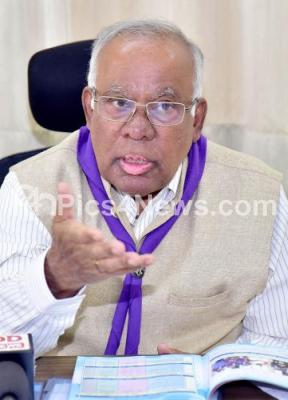 Photo Caption : PGR Sindhya, Former Minister and Chief Commissioner of Bharat Scouts and Guides addressing a press conference at Bharat Scouts and Guides office, in Bengaluru on Saturday 24th June 2023