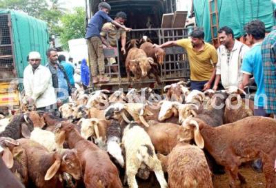 Sheep and goats being sold at Shivaji Nagar livestock market ahead of Bakrid Festival, in Bengaluru on Saturday 24th June 2023