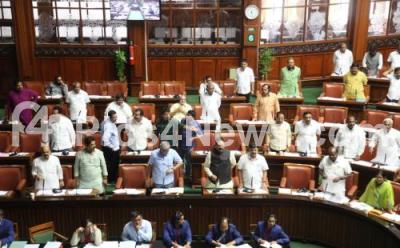 Photo Caption : BJP and JDS MLAs during Assembly Session at Vidhana Soudha, in Bengaluru on Thursday 6th July 2023