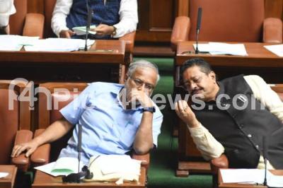 Photo Caption : BJP MLAs Suresh Kumar and Basavanagowda Patil Yatnal during Assembly Session at Vidhana Soudha, in Bengaluru on Thursday 6th July 2023