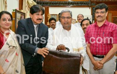 Photo Caption : Chief Minister of Karanataka Siddaramaiah arrives to present the first Karnataka State Budget of his government in Assembly at Vidhana Soudha, in Bengaluru on Friday 7th July 2023