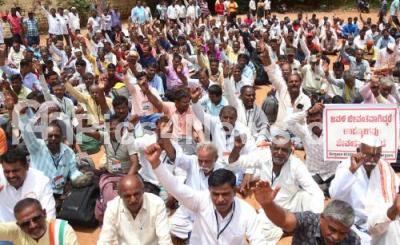 Members of Rashtriya Vinakara Seva Sangha protesting demanding free electricity for Weavers and complete free loan waiver at Freedom Park, in Bengaluru on Thursday 13th July 2023