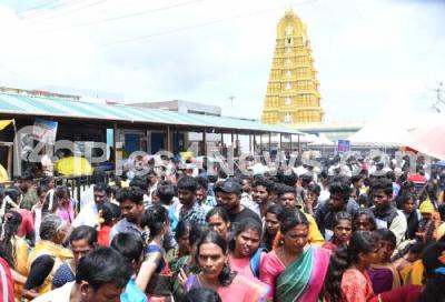 Thousands of devotees throng to Chamundi Hills to offer special puja to Goddess Chamundeshwari on the Ashada Friday, in Mysuru on Friday 14th July 2023