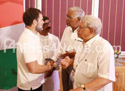 Photo Caption : Congress leader Rahul Gandhi with Other Party Hemant Soren, Uddhav Thackery, Sitaram Yechury, D Raja and Omar Abdullah during United opposition parties meeting at a private hotel, in Bengaluru on Tuesday 18th July 2023