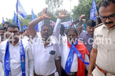 Photo Caption : Police detained members of Republican Party of India during their protesting against Central government and demand constitutional promise of safety and dignity for all women on the recent issue of violence in Manipur, at Freedom park, in Bengaluru on Wednesday 2nd August 2023
