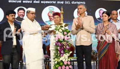 Photo Caption : Governor of Karnataka Thaawar Chand Gehlot with Chief Minister of Karnataka Siddaramaiah, Minister Krishna Byre Gowda, Chief Secretary Vandita Sharma and others during the Centenary ceremony of KAS Officers at Vidhana Soudha , in Bengaluru on Wednesday 9th August 2023