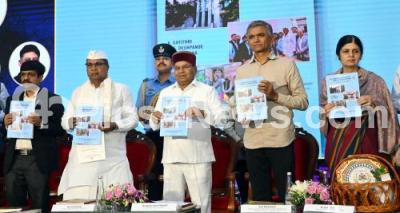 Photo Caption : Governor of Karnataka Thaawar Chand Gehlot with Chief Minister of Karnataka Siddaramaiah, Minister Krishna Byre Gowda, Chief Secretary Vandita Sharma and others releasing souvenir during the Centenary ceremony of KAS Officers at Vidhana Soudha , in Bengaluru on Wednesday 9th August 2023