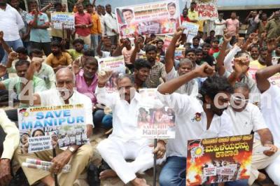 Members of Karnataka DMK (Dravida Munnetra Kazhagam) Youth wing protesting against Central government and demand constitutional promise of safety and dignity for all women on the recent issue of violence in Manipur, in Bengaluru on Friday 11th August 2023