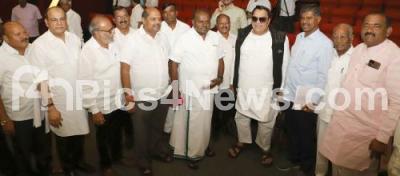 Photo Caption : Former CM HD Kumaraswamy with JD(S) State President CM Ibrahim, MLA GT Deve Gowda and other leaders during JD(S) party core committee meeting at party office, in Bengaluru on Friday 18th August 2023