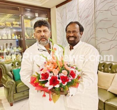 Event Description : Thiruvallur MP from Tamil Nadu K Jayakumar met DCM DK Sivakumar at his residence, in Bengaluru on Saturday 19th August 2023
